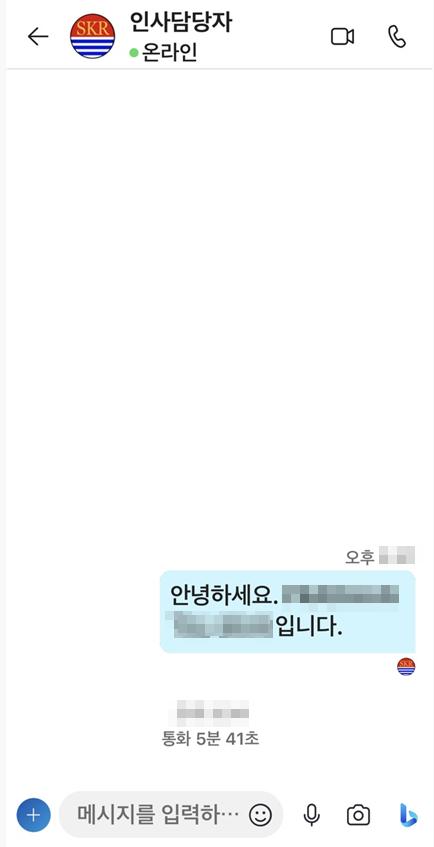 면접 당일 면접 시간 20분 전쯤 아래와 같이 메시지가 왔습니다.