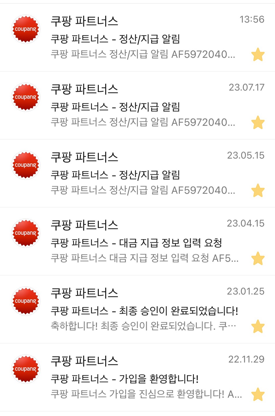 2022년 11월 말쯤 쿠팡 파트너스를 시작했고 2개월여 만인 2023년 1월에 최종 승인이 되었다. 이후 5월(1월~4월 수익), 7월(5월~6월 수익), 12월까지(7월~11월 수익) 총 3번에 걸쳐서 수익금을 입금받았다.