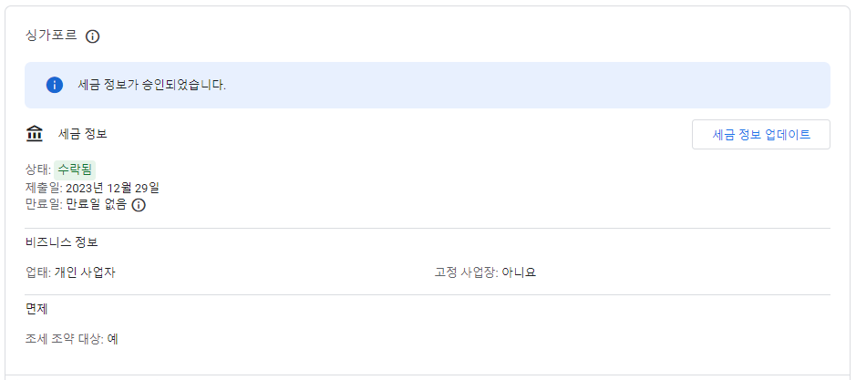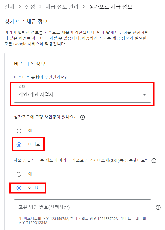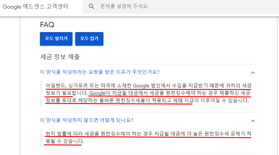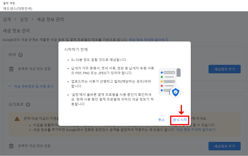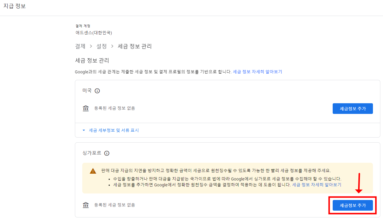구글 애드센스 싱가포르 세금 정보 제출하는 방법