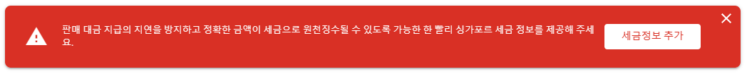 얼마 전 티스토리 구글애드센스 웹사이트에 접속해서 '지급정보'를 눌렀는데 아래와 같이 빨간 창이 뜬 것을 보게 되었습니다. 싱가포르 세금 정보 제공 요청 내용이었는데요.