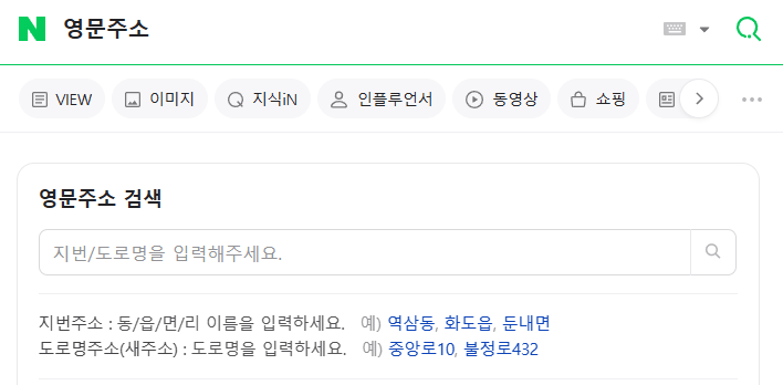 영문 주소의 경우, 네이버에서 '영문 주소'라고 검색해서 확인하거나 정부 24에서 웹사이트에서 '주민등록표등본' 영문 발급(처리시간 소요)을 해서 확인이 가능함.