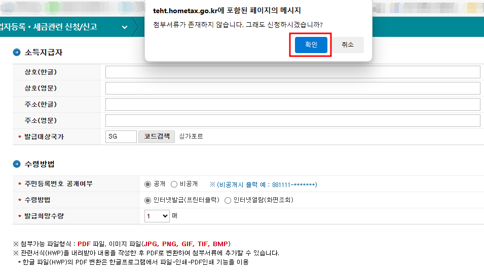 싱가포르 세금 정보 입력시 조세 조약이 맺어져 있는 국가인 경우 현지 정부에서 발급한 즉 우리나라에서 발급한 '거주자 증명서 (처리시간 소요) '를 제출해야 하는데요.