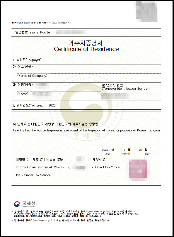 이 '거주자 증명서'는 '국세청 홈택스' 웹사이트에서 발급받을 수 있습니다. 세금 정보 제출을 진행하시기 전에 미리 서류를 준비해주셔야 하는데요. 서류 신청 방법은 아래와 같습니다.