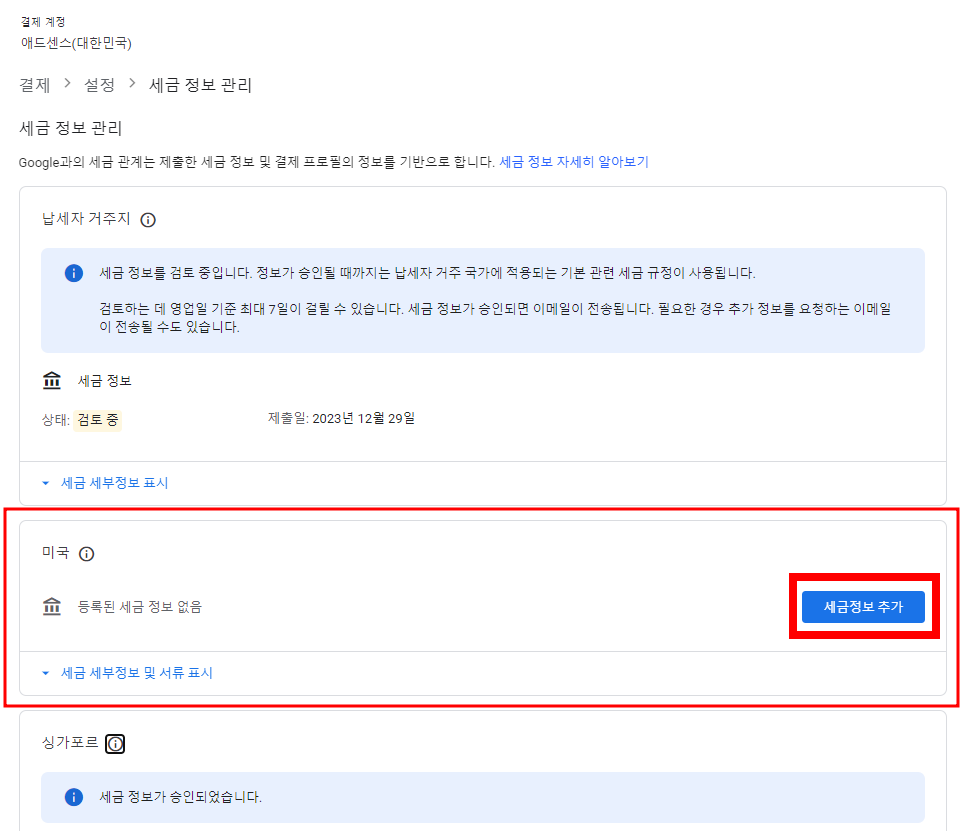 [애드센스] 싱가포르 세금 정보 제출 방법ㅣ거주자 증명서 발급 방법