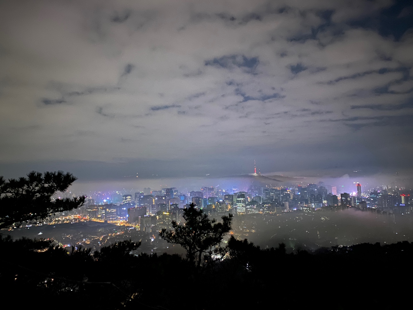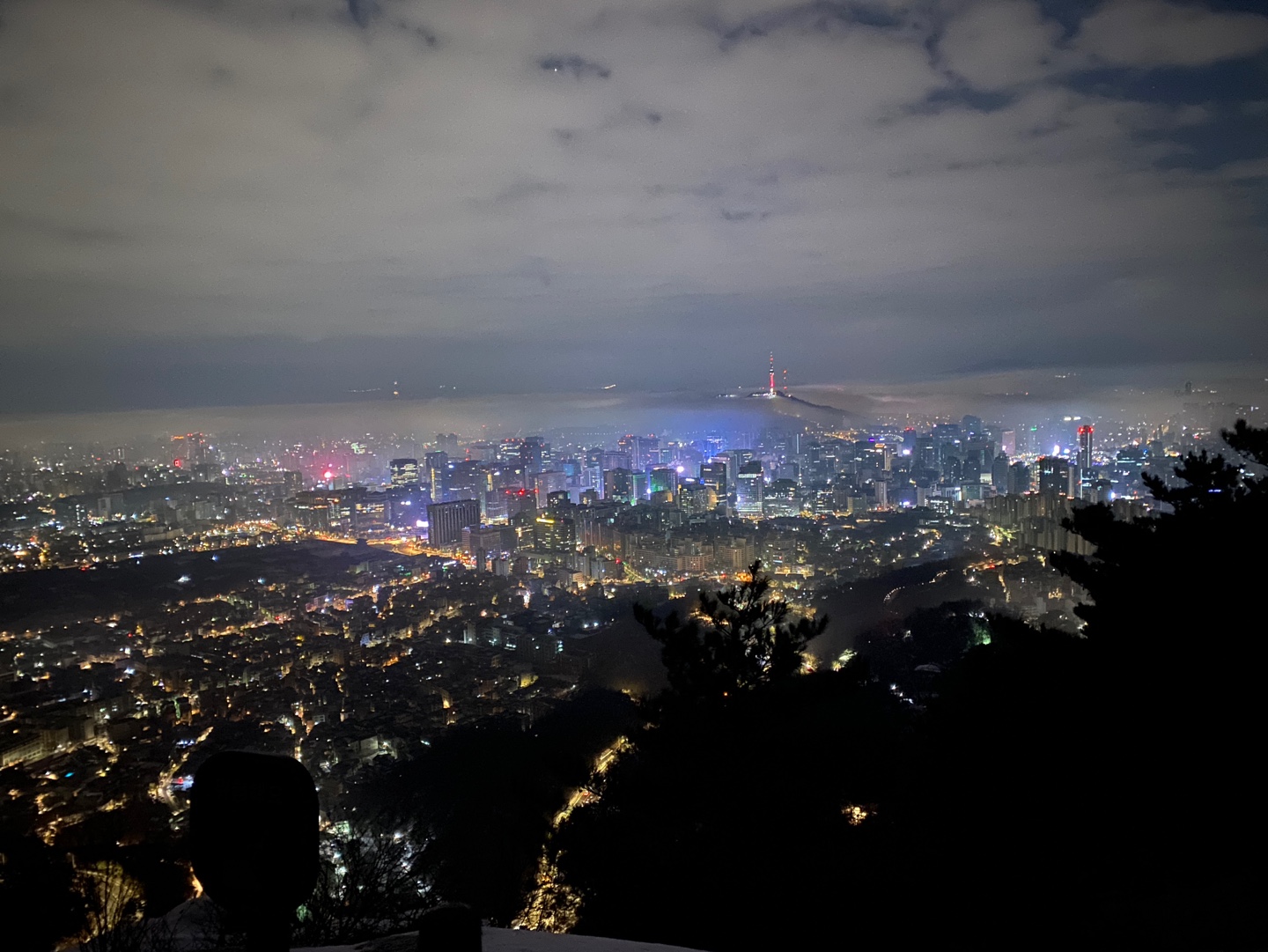 올라가는 것은 너무 무섭고 운동하다보니 더운데 공기는 춥고 힘들었는데 올라가서 도시 야경(?)을 보니 너무 예쁘더라고요. 롯데월드타워도 보이고요:)
