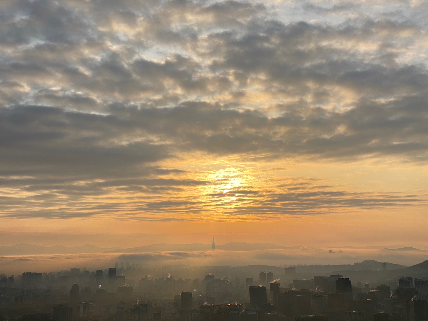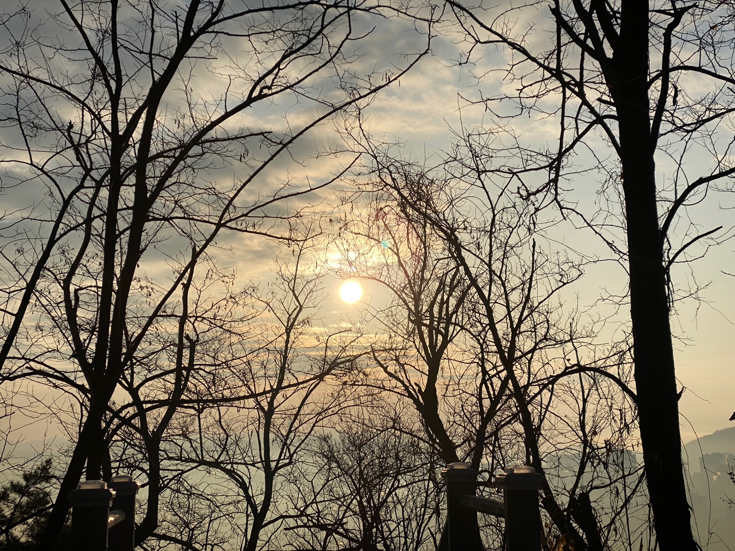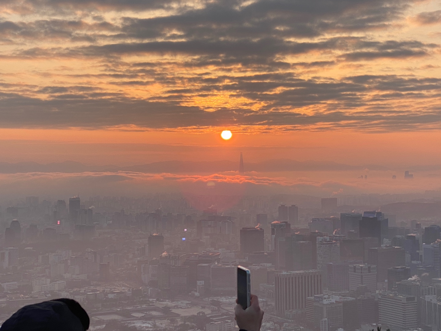 인왕산 도착 후 약 1시간 가량 가만히 앉아서 일출을 기다리다 보니 춥고 발바닥이 시리더라고요. 다행히 보온병에 싸간 커피가 있어서 마시니 한결 나았습니다. 정확히 오전 7시49분에 해가 빼꼼히 얼굴을 드러내기 시작했어요!! 그러더니 뿅 하고 떴는데 너무나도 신기했습니다 ㅎㅎ