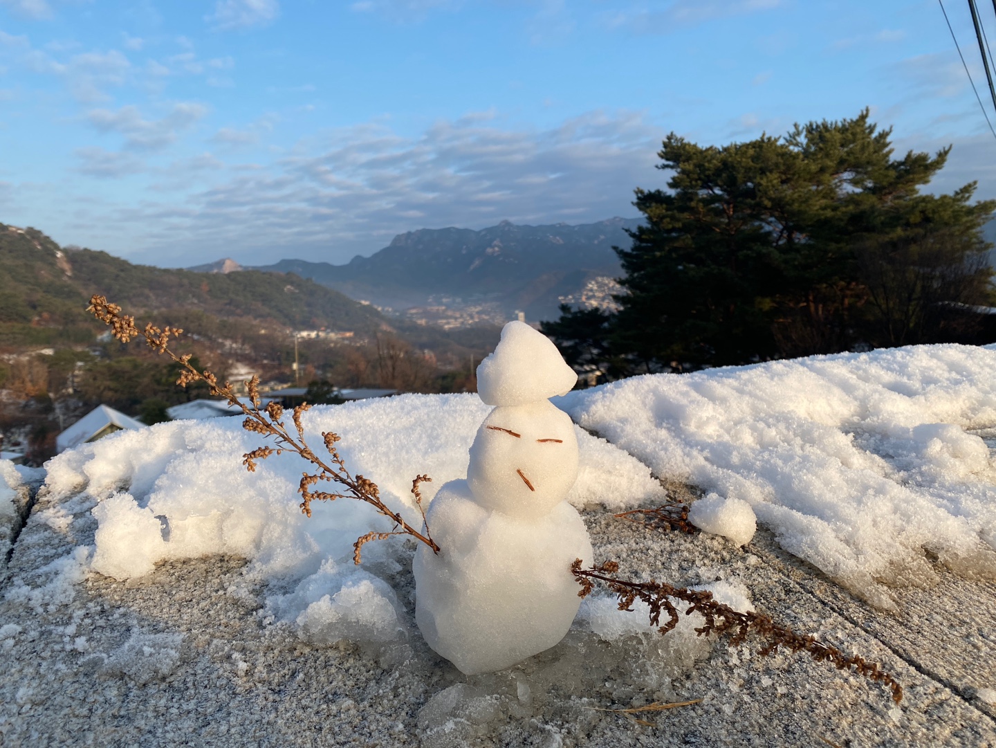 곳곳에 사람들이 눈사람을 만들어 놓았더라고요. 이 눈사람은 너무나 귀여워서 사진으로 찰칵 찍어왔어요.