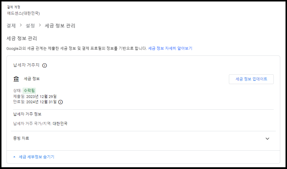 [애드센스] 2024년 세금 정보 업데이트 ㅣ 2024년 거주자 증명서 제출