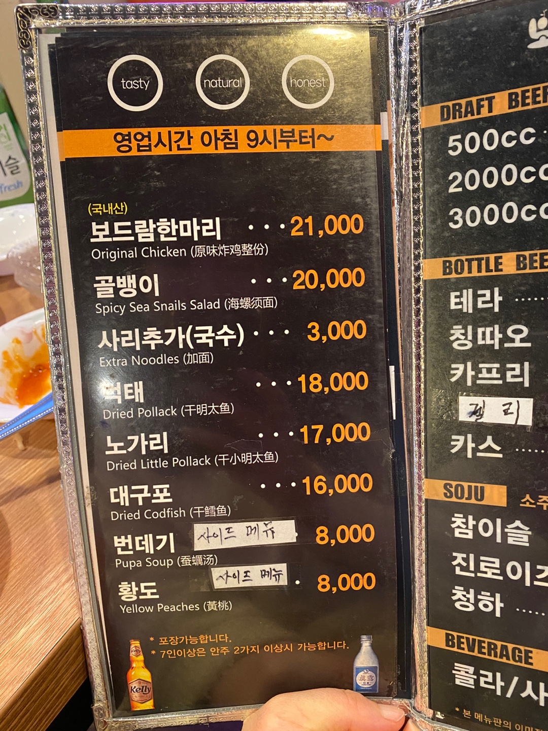 치킨은 후라이드 치킨(보드람한마리)만 있습니다.