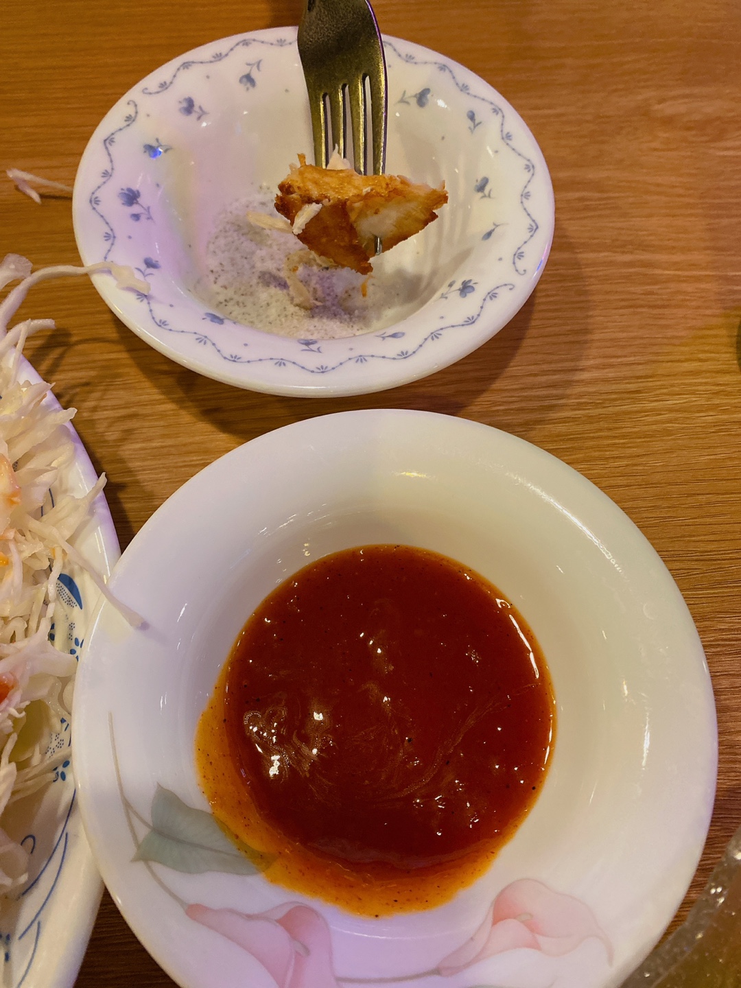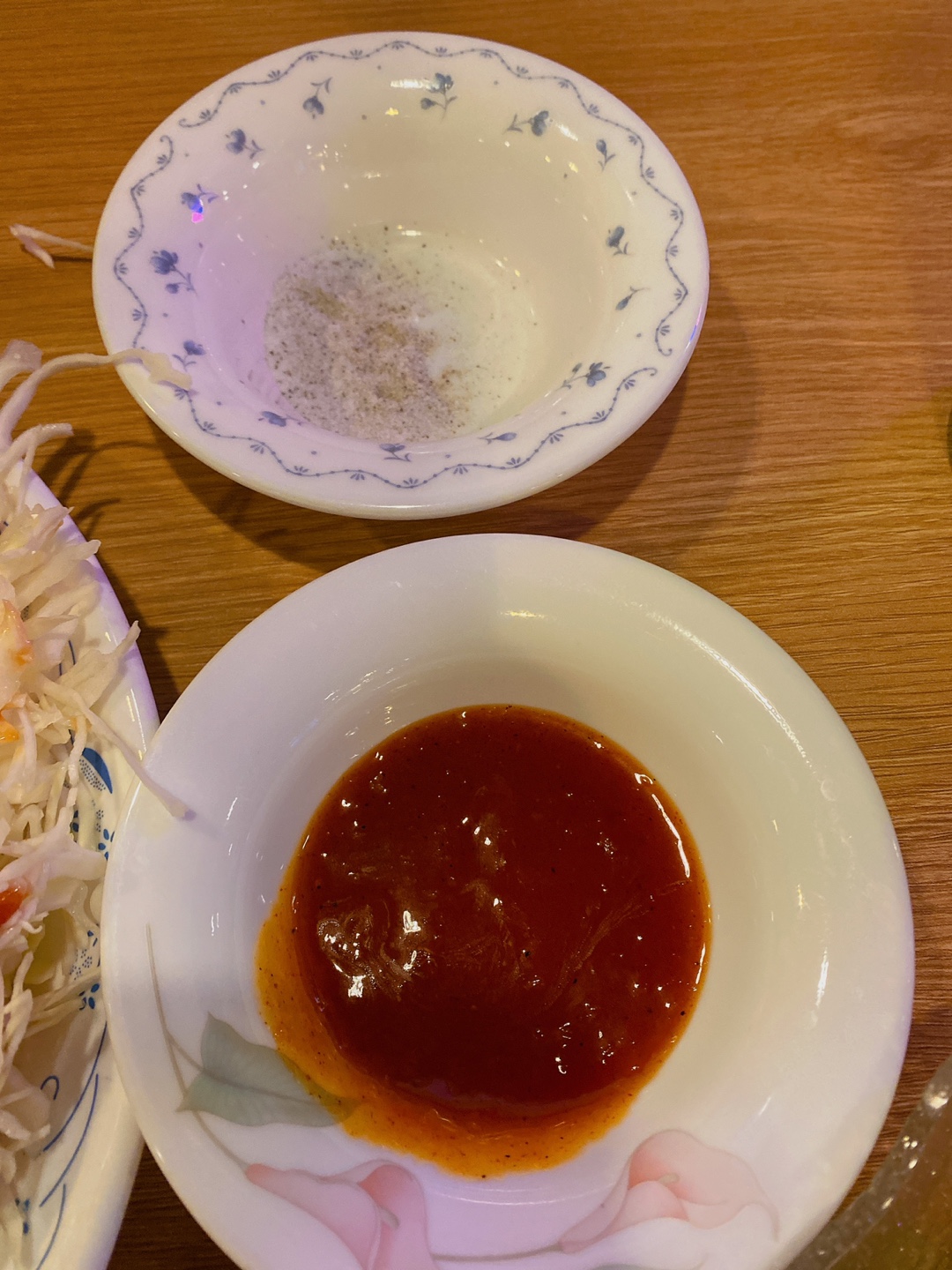 사이드로 양배추에 케첩, 마요네즈가 뿌려져 나옵니다.