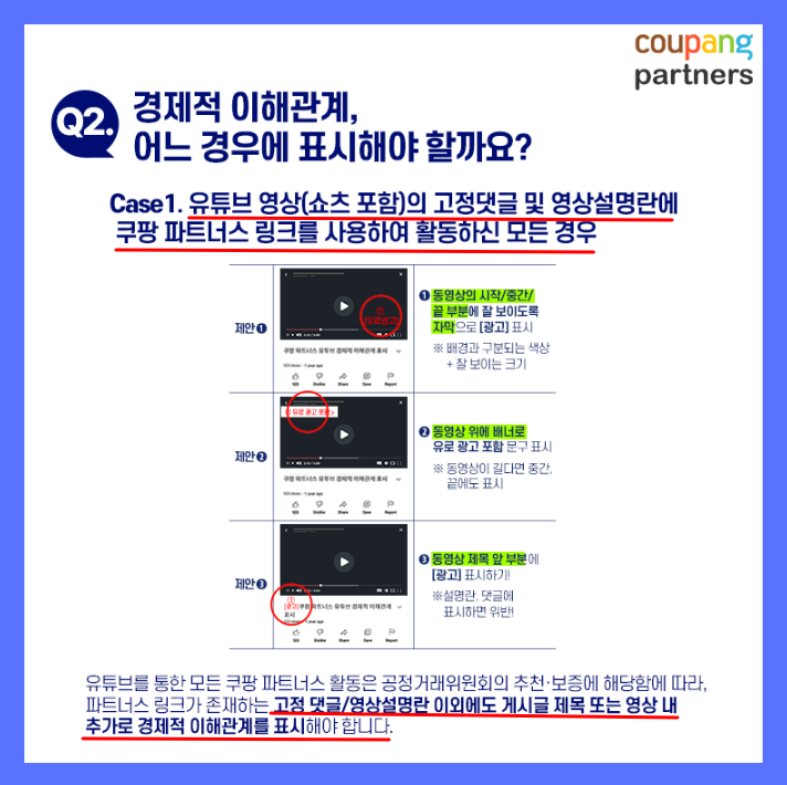✅ 경제적 이해관계는 추천, 보증 내용과 같은 언어를 사용해 표시