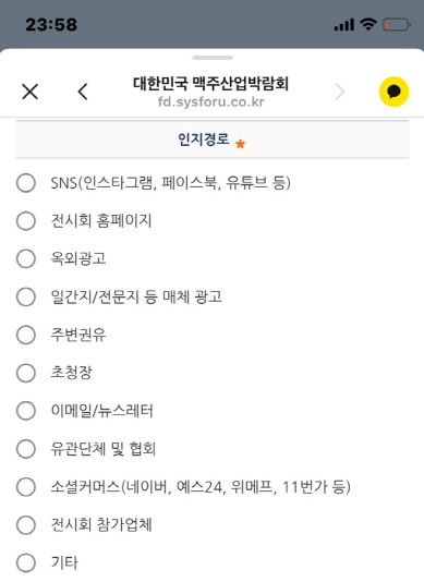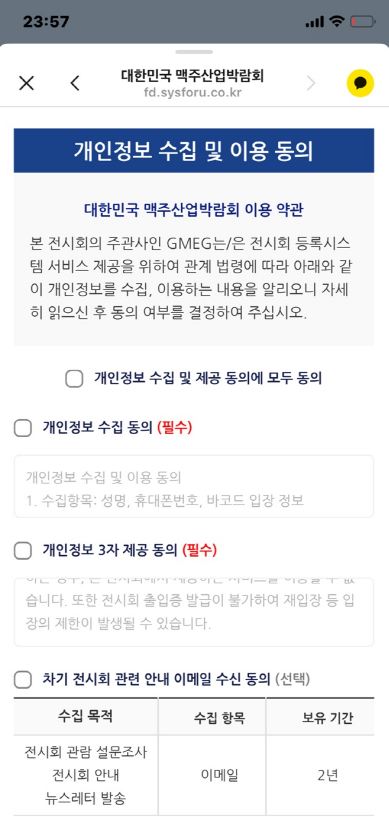 얼리버드 티켓 사전 예매자였던 저는 카톡으로 받은 링크를 통해 위의 방법으로 등록을 하였는데요. 제가 표를 2매 한꺼번에 구매를 했었는데 같이 간 남편의 경우는 아래 모바일 등록 QR코드를 스캔하고 등록정보를 입력하는 절차를 진행해 주면 됩니다.
