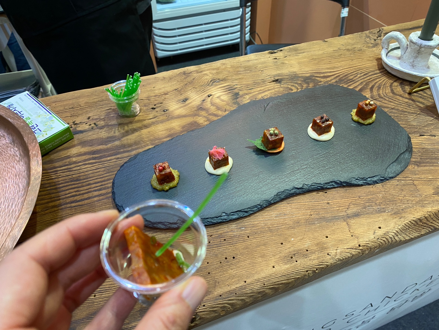 다음으로 속 쓰림 및 빨리 취함 방지를 위해 빈 속에 오지 않기가 있는데요. 참고로 입장할 때 짜 먹는 숙취해소제도 제공해 주신답니다. 그리고 빈 속에 오신 분들은 전시장 내부에서도 안주거리를 사서 드실 수도 있으니 참고해 주세요.