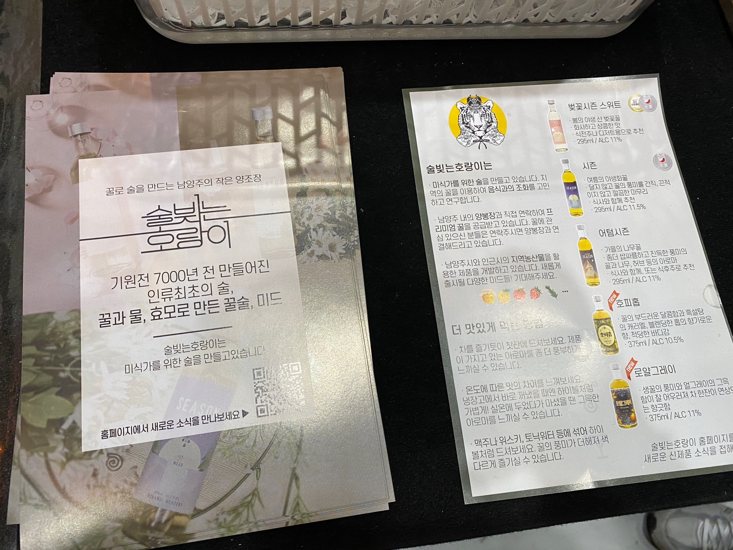 술 빚는 호랑이는 꿀로 술을 만드는 남양주의 작은 양조장이라고 해요. 저는 호피홉으로 시음을 해보았습니다.