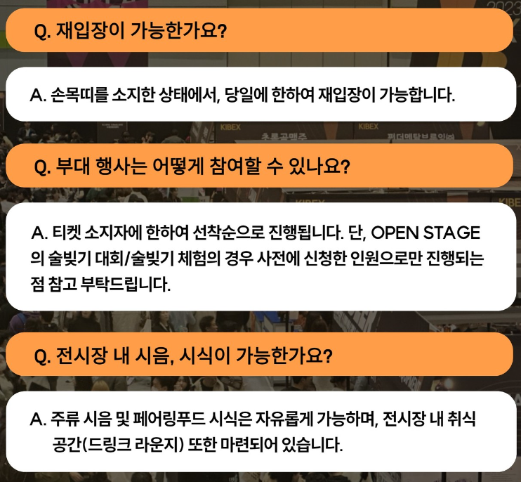 그리고 정말로 KIBEX를 제대로 즐기고 싶다 하시는 분들은 KIBEX인스타 등 게시된 내용들을 잘 확인하시어 부스배치도라던가 부대행사 등을 미리 확인하시어 관람 동선을 계획하시면 정말 좋으실 것 같습니다.