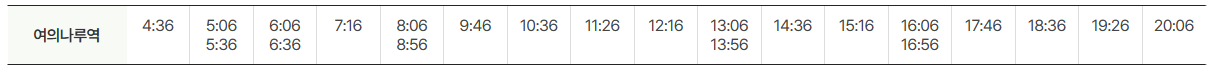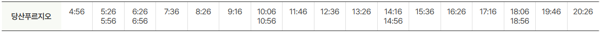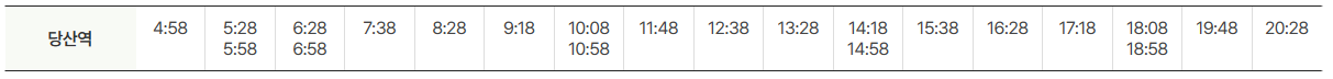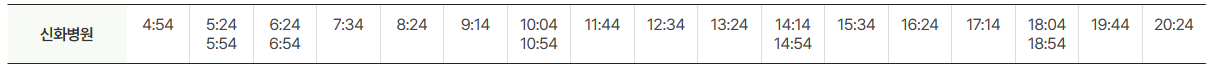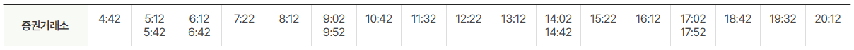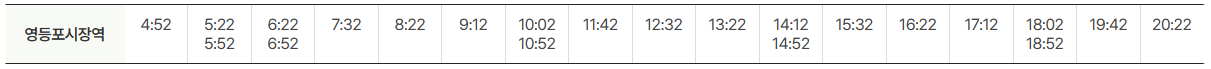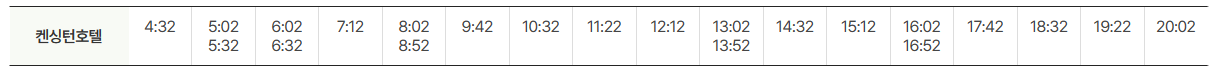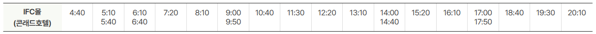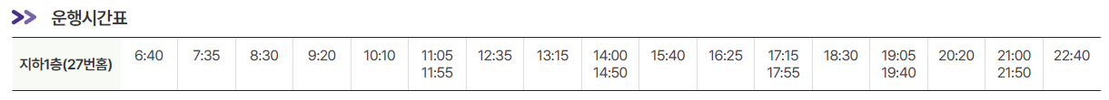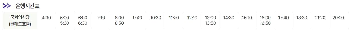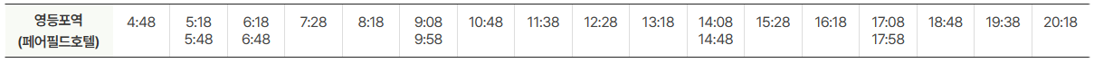 공항방면 운행시간표는 아래와 같습니다.