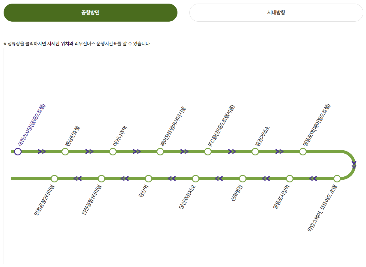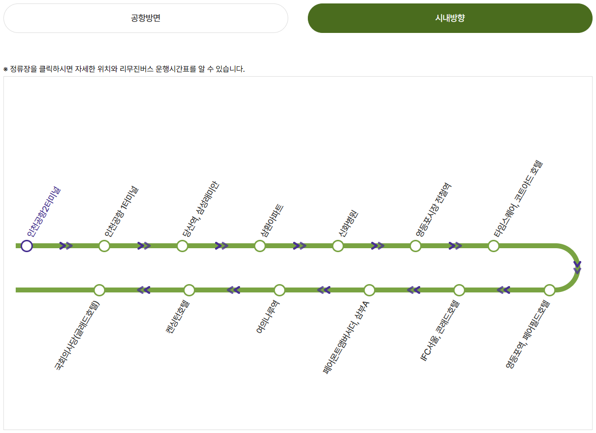 공항 방면/시내방향 운행노선은 아래와 같습니다.