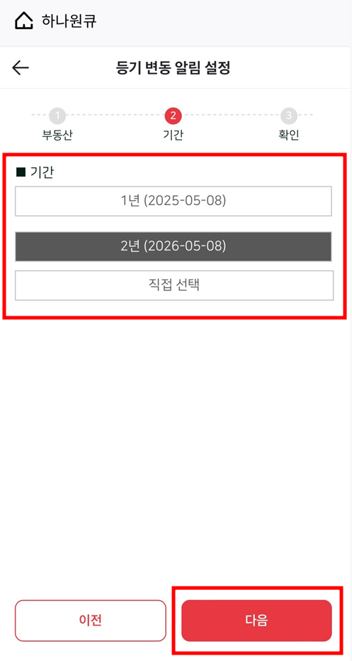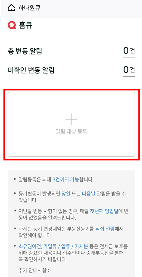 부동산 등기변동 알림 신청이 완료되었습니다.'라고