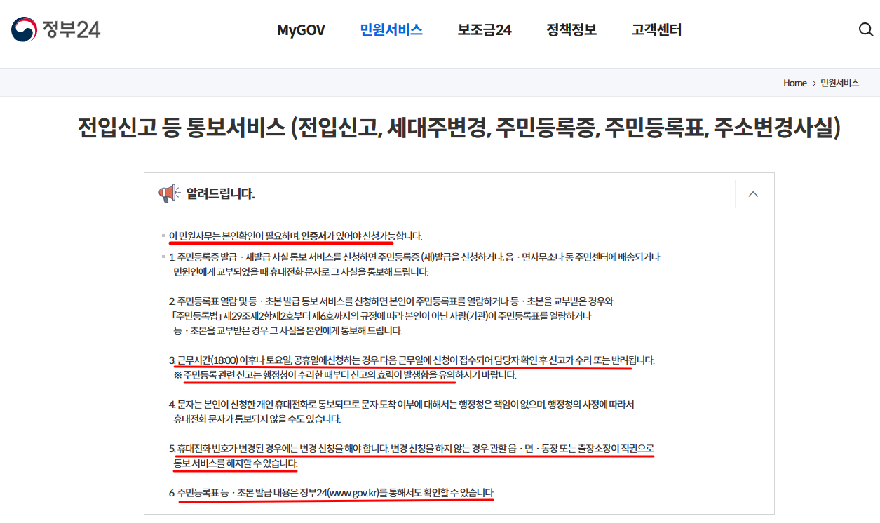 전세사기 예방을 위한 부동산 등기변동 알림 서비스 정부24 전입신고 등 통보서비스