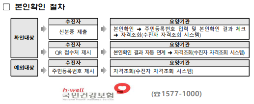 * 위 본인 확인 예외사항 중 ②번의 6개월 이내 내원 환자의 기준은 2024.5.20. 이후 요양기관에서 최초 본인 확인을 한 수진자가 이후 동일 요양 기관에서 6개월 이내에 진료를 받을 경우 본인 확인 예외입니다.