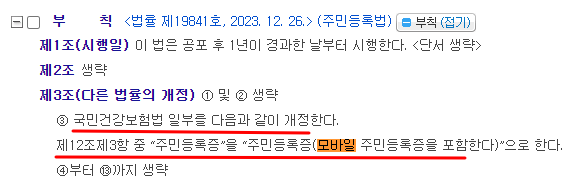 2023년에 '건강보험증'에 대한 개정된 내용에 따르면 가입자 또는 피부양자는 주민등록증(모바일 등록증을 포함)으로 요양기관이 그 자격을 확인할 수 있으면 건강보험증을 제출하지 아니할 수 있다는 내용이 있기 때문에 핸드폰에 '모바일 등록증'이 설치되어 있다면 '모바일 건강보험증'은 설치하지 않아도 됩니다.