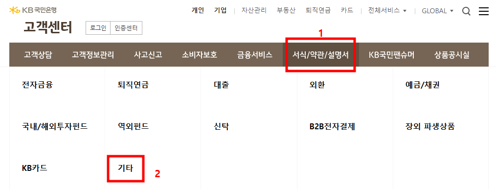 '서식/약관/설명서'에 마우스를 대면 아래에 나오는 '기타'를 클릭합니다.