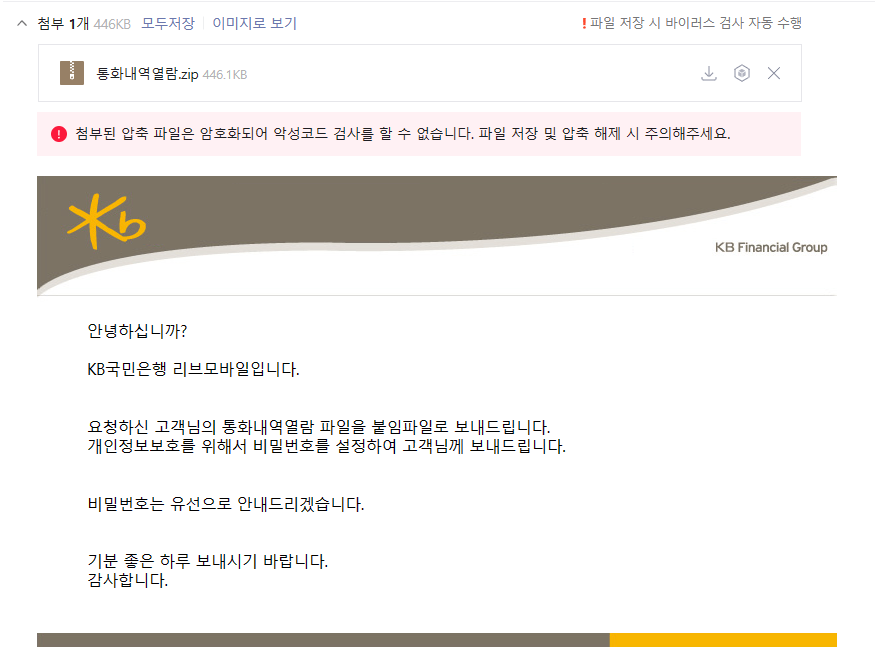 리브엠에서 통화내역을 zip파일로 압축해서 메일로 보내줍니다. 비밀번호는 유선으로 안내받습니다.