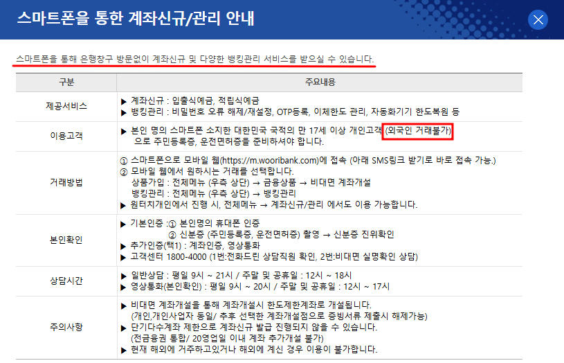 다만, 외국인의 경우는 반드시 영업점으로 방문하여 진행(비대면 개설 불가)해야 한다고 합니다.