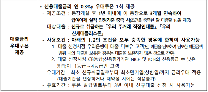 2. 신용대출(특정상품 신규 취급 시 한정) 금리우대(연 0.3% p) 쿠폰 제공