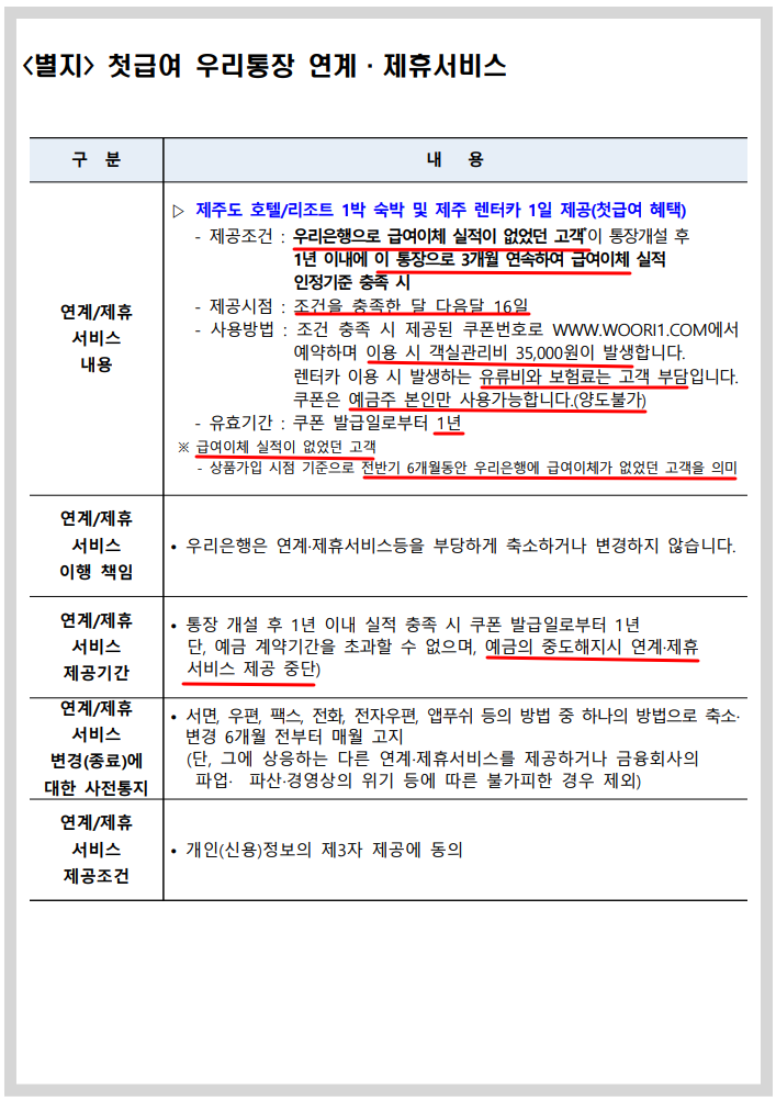 우리은행 첫 급여 우리통장 제주 여행 패키지 쿠폰 발급 후기