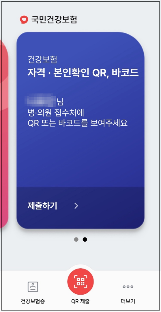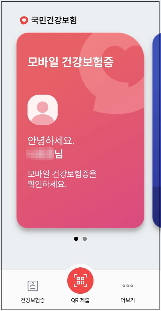 공단에서 개발한 앱으로 종이 건강보험증을 대체하여 진료받을 수 있는 건강보험증입니다. 모바일 건강보험증과 모바일 자격 본인 확인 QR인증으로 구성되어 있습니다. 외국인 건강보험가입자도 이용 가능합니다. 병원에 방문하여 앱에서 QR을 생성하여 30초 내에 병원의 인식기기(스캐너 등)에 근접시켜서 제출하거나 인식기기가 없는 병원인 경우 직원이 직접 육안으로 확인하는 방법으로 본인 확인을 하면 됩니다. 타인의 건강보험증(신분증)을 빌려주거나 도용해 진료하면 2년 이하의 징역 또는 2000만 원 이하의 벌금에 처해질 수 있습니다. ※ 국민건강보험법 제115조