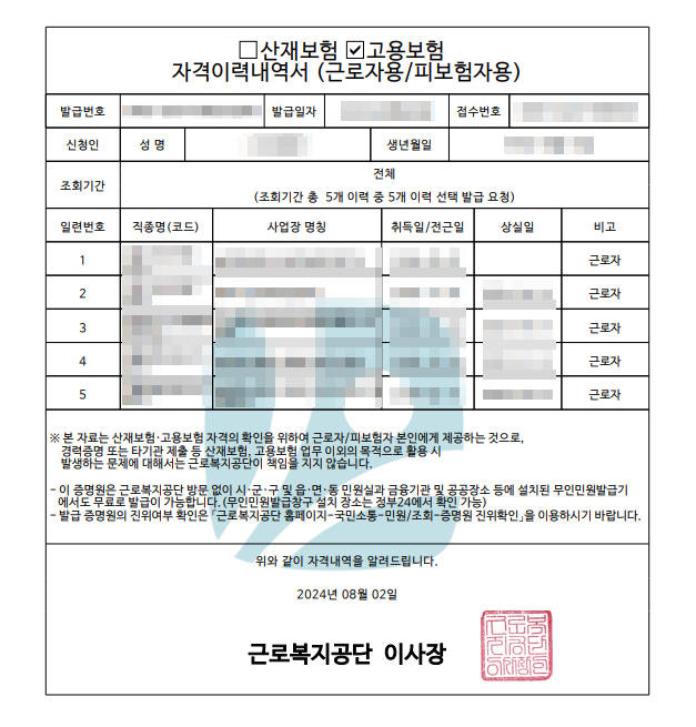 고용보험 자격이력내역서 발급도 가능하며