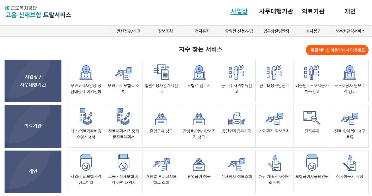 '고용산재보험토털서비스'를 검색해서 접속해 주세요.