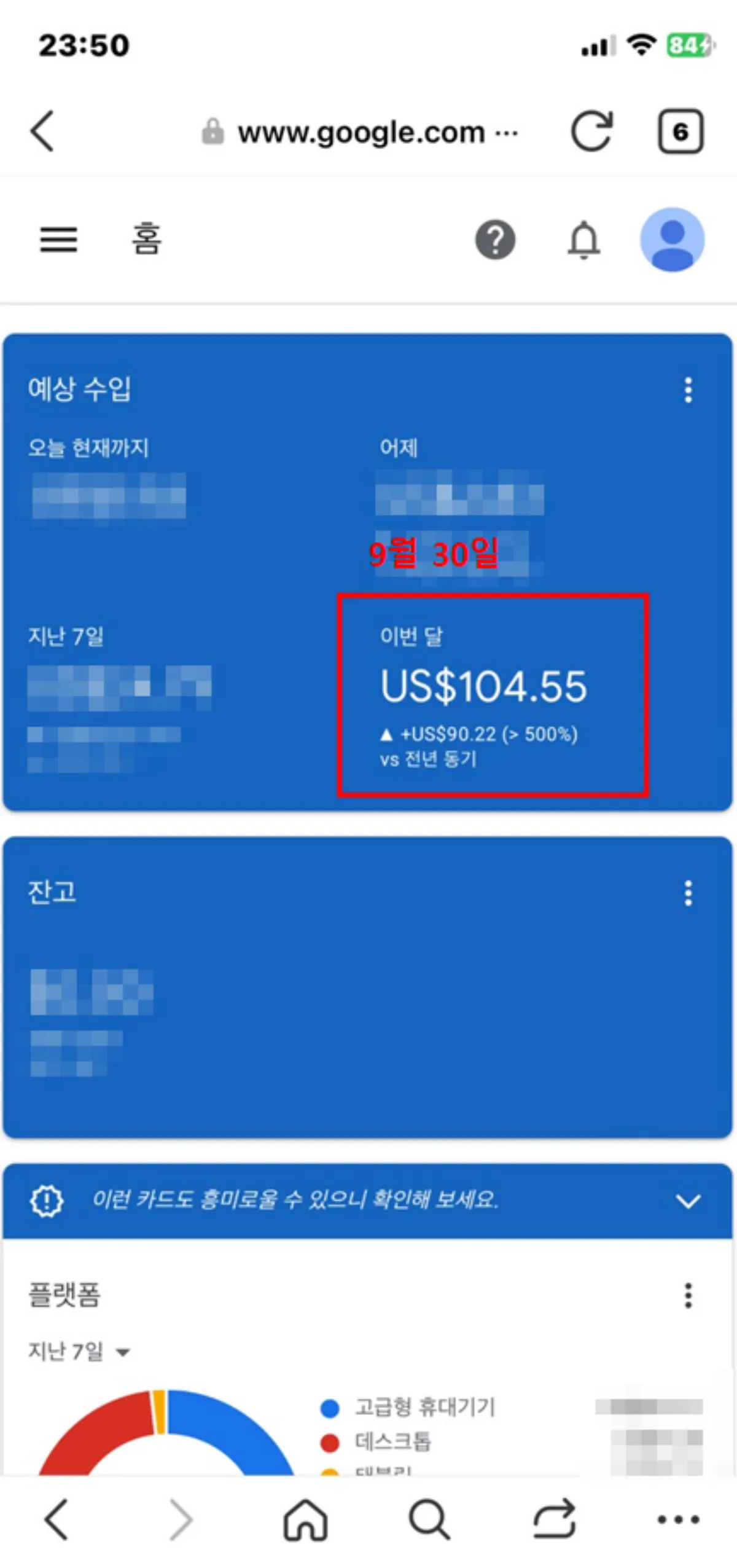 또 한가지 의미 있는 것은 9월 수익이 전달 대비 두배로 뛰면서 처음으로 한 달 만에 100달러를 달성하게 되었다. 포스팅도 1일 1포 수준으로 예전에 더 많이 쓴 적도 있었지만 그때는 수익이 약 34달러였다. 이 부분에서도 단순히 포스팅 개수가 중요한 게 아니라는 점을 알 수 있었다.