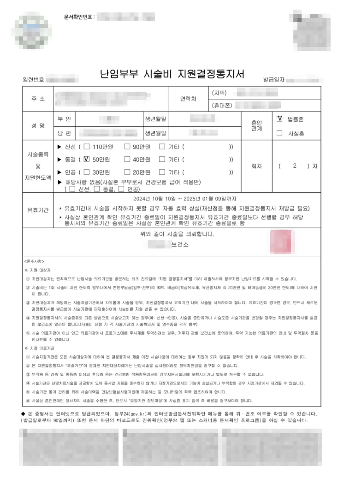 정부24 난임 시험관 시술비 지원결정통지서 출력