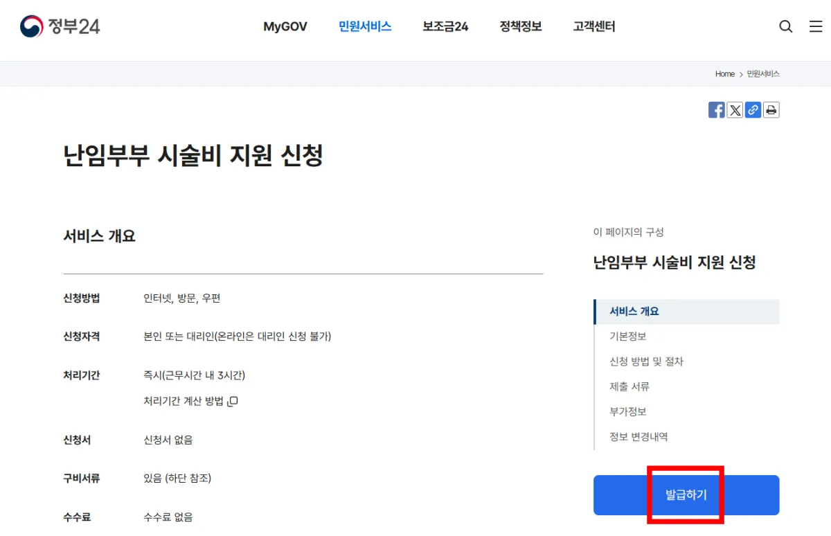 정부24 난임부부 시술비 지원 온라인 신청 방법
