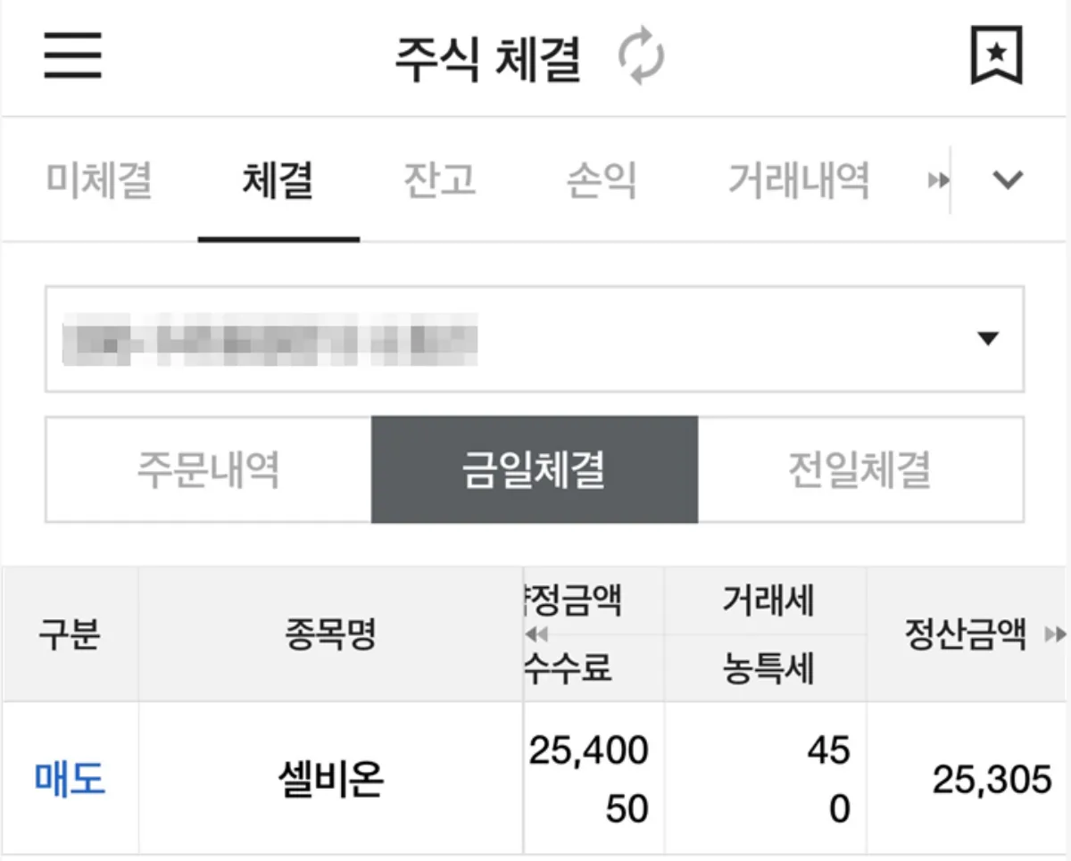 저는 시초가인 25,400원에 매도가 되었고 수익은 8,305원입니다.
