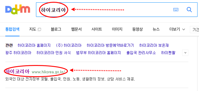 1. 컴퓨터로 다음,구글 등의 웹사이트에서 하이코리아 검색
