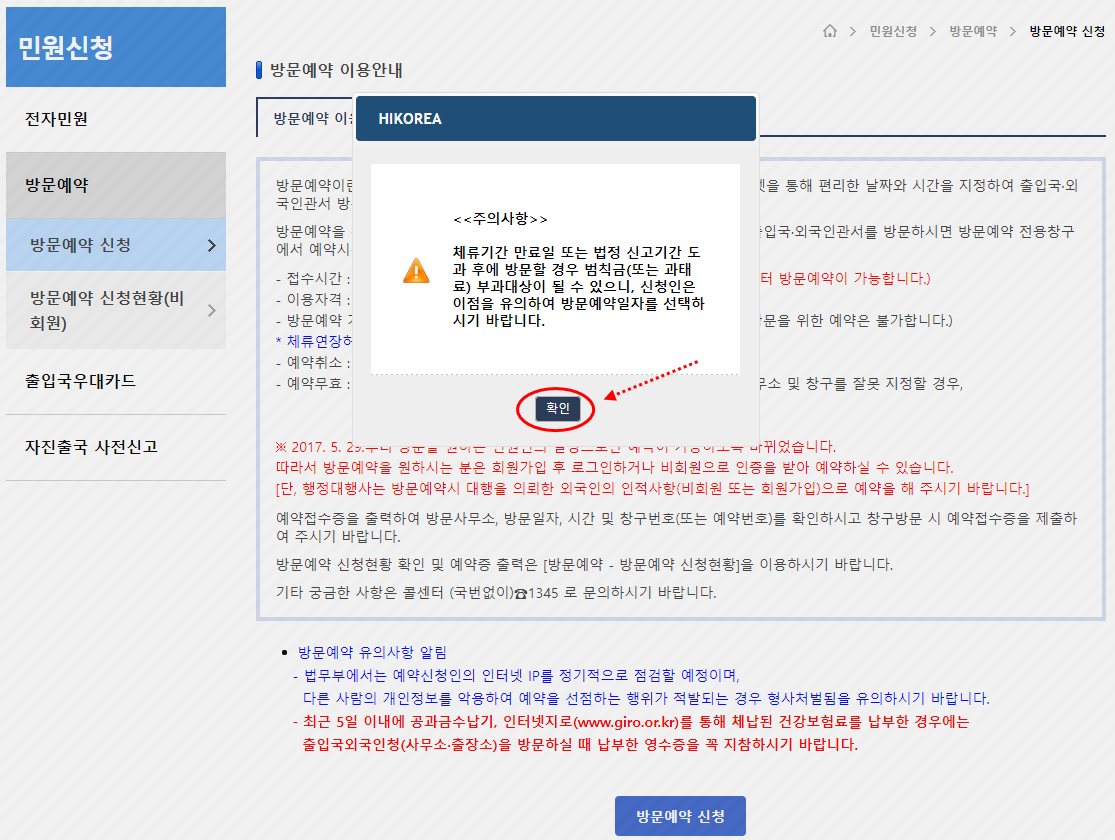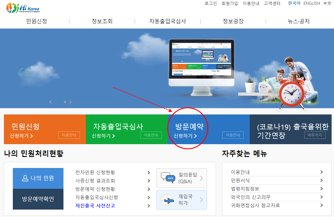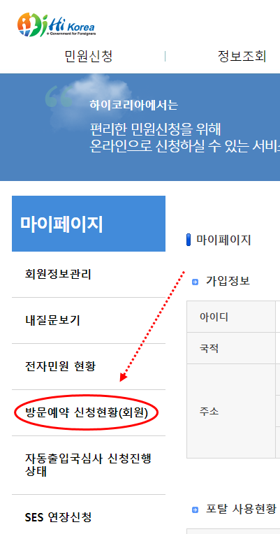 '하이코리아 회원 방문 예약을 컴퓨터로 하는 방법'