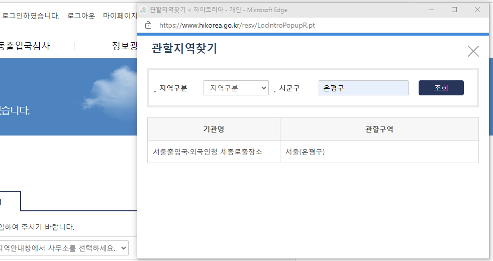 > 담당기관(방문할 출입국사무소)에 자동입력 됨.