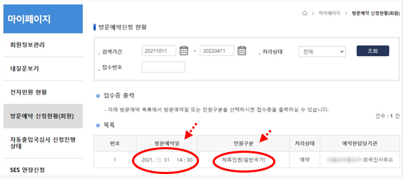 방문예약일 또는 민원구분 클릭