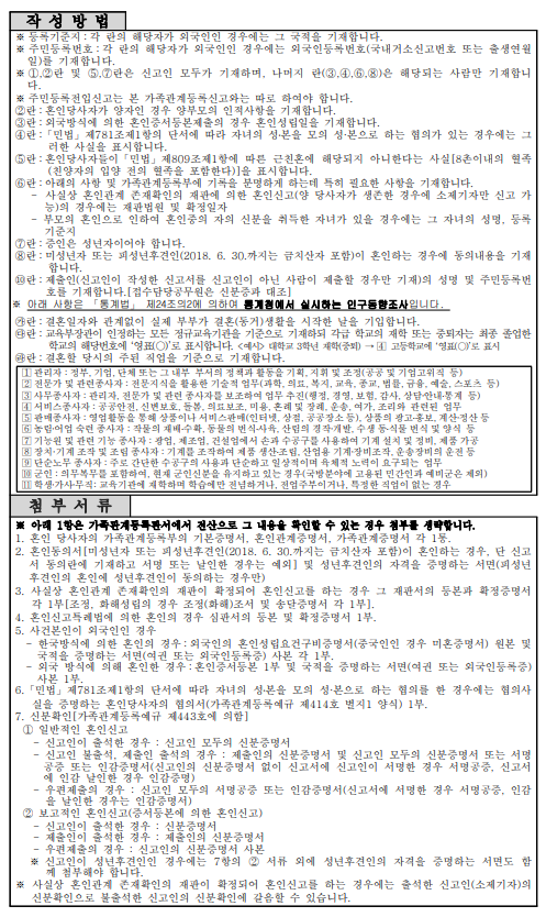 '등록기준지'와 '주소' : 한국인은 각각 다 기재를 하고, 외국인 배우자는 국가만 기재
