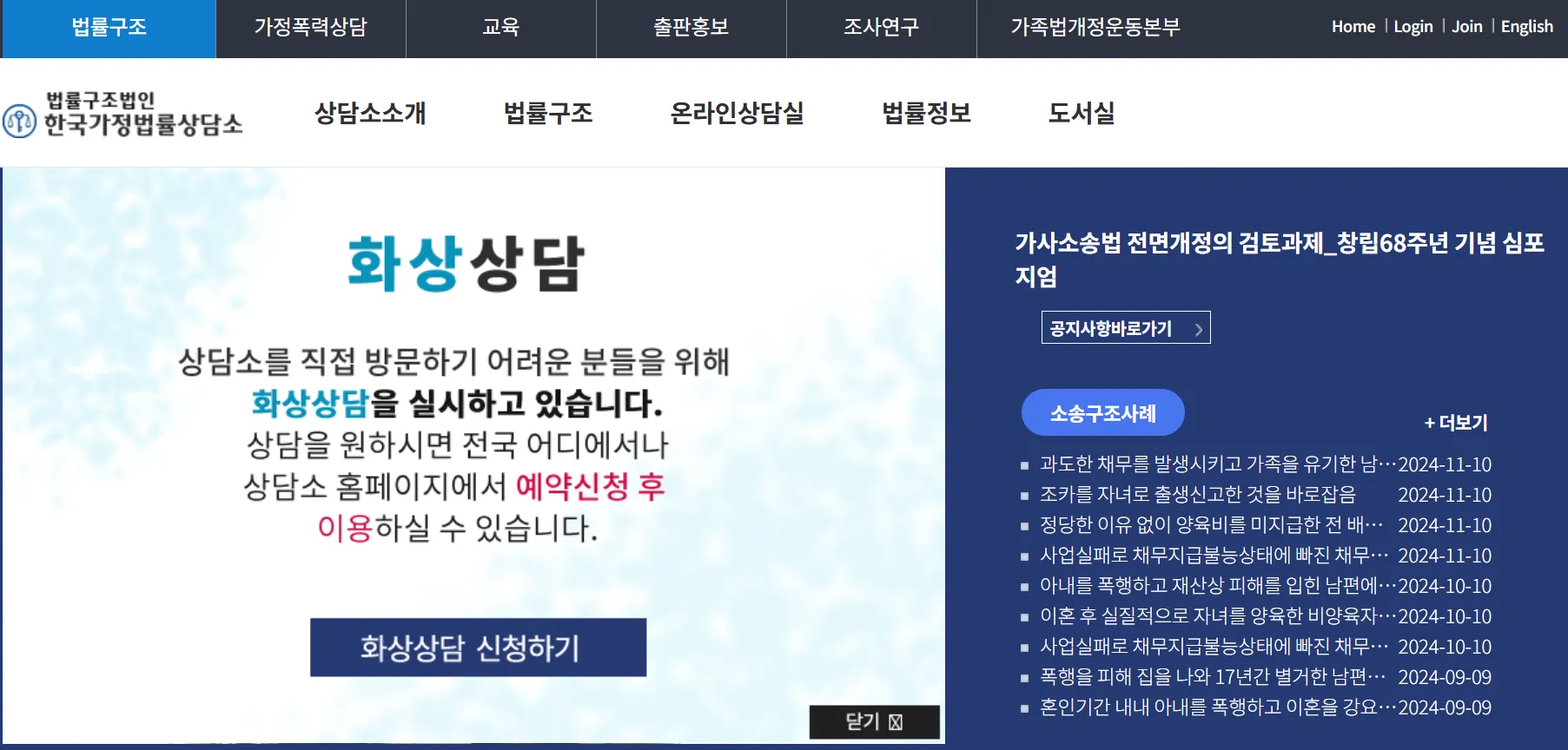 | 사이트 | http://www.lawhome.or.kr (사이버 상담실) |