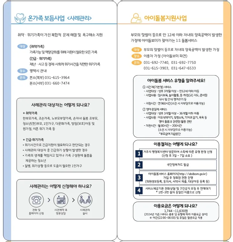 부모의 맞벌이 등으로 자녀의 양육공백이 발생한 가정에 대한 아이 돌보미 서비스도 있네요.