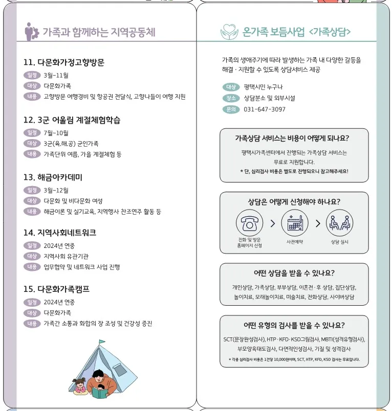 또 평택 시민 누구나 가족 내 다양한 갈등을 해결·지원할 수 있도록 상담서비스를 제공한다고 해요.
