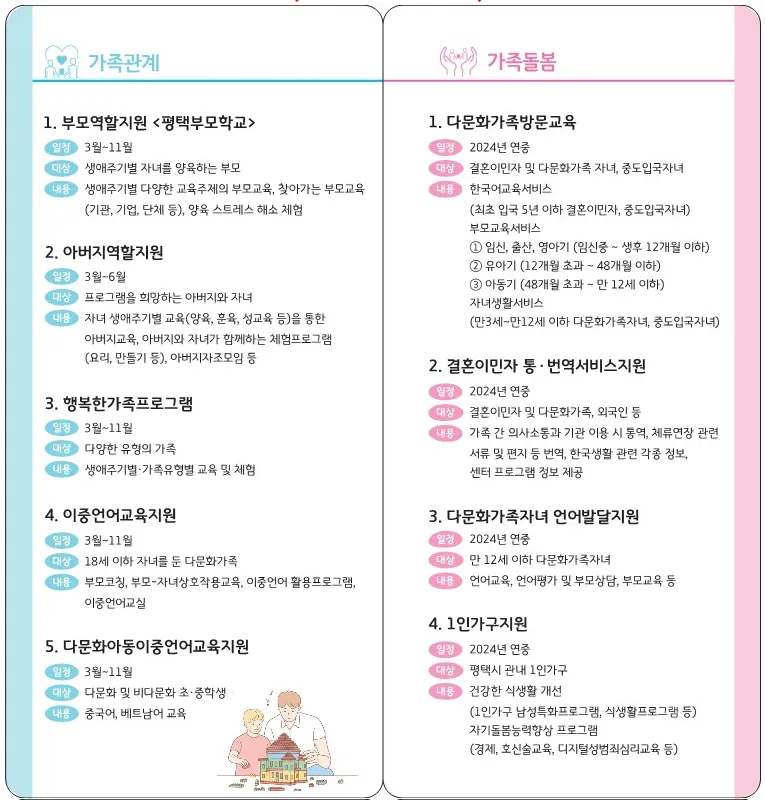 평택시 가족센터 프로그램 종류 일정