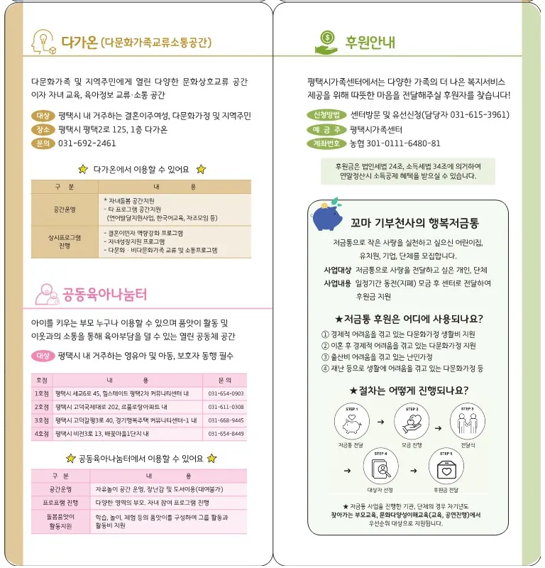 평택시가족센터에서는 가족의 더 나은 복지 서비스 제공을 위해 후원자도 찾고 있다고 하는데요.