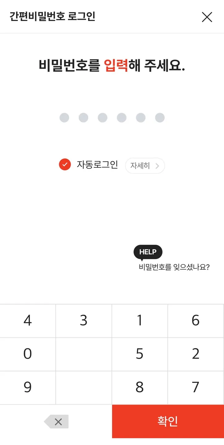 비밀번호를 입력하고 '확인'을 누릅니다.