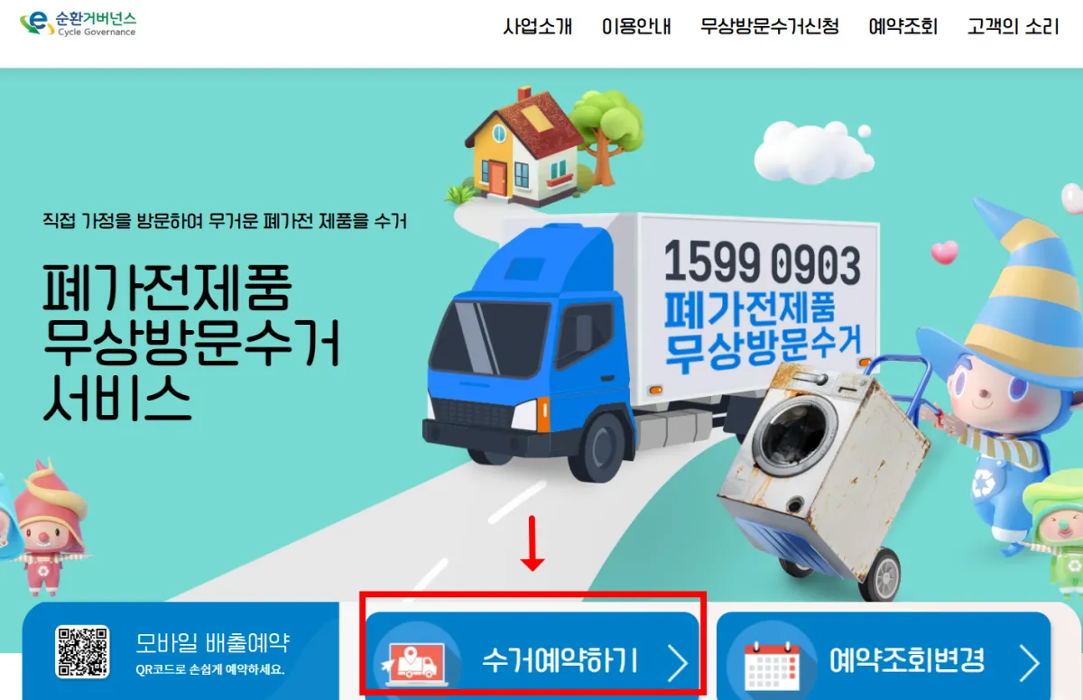 폐가전 배출 예약은 전국 어디서나 간편하게 하실 수 있으며 온라인 또는 유선전화(1599-0903)로 신청이 가능합니다.