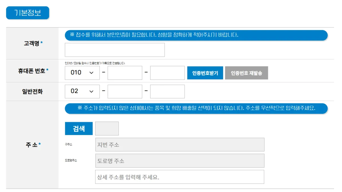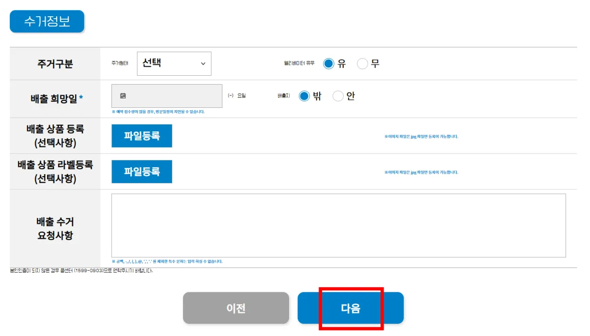 '기본정보( 휴대폰 인증 필요)'와 '수거정보'를 입력하고 맨 밑에 '다음'을 클릭합니다.